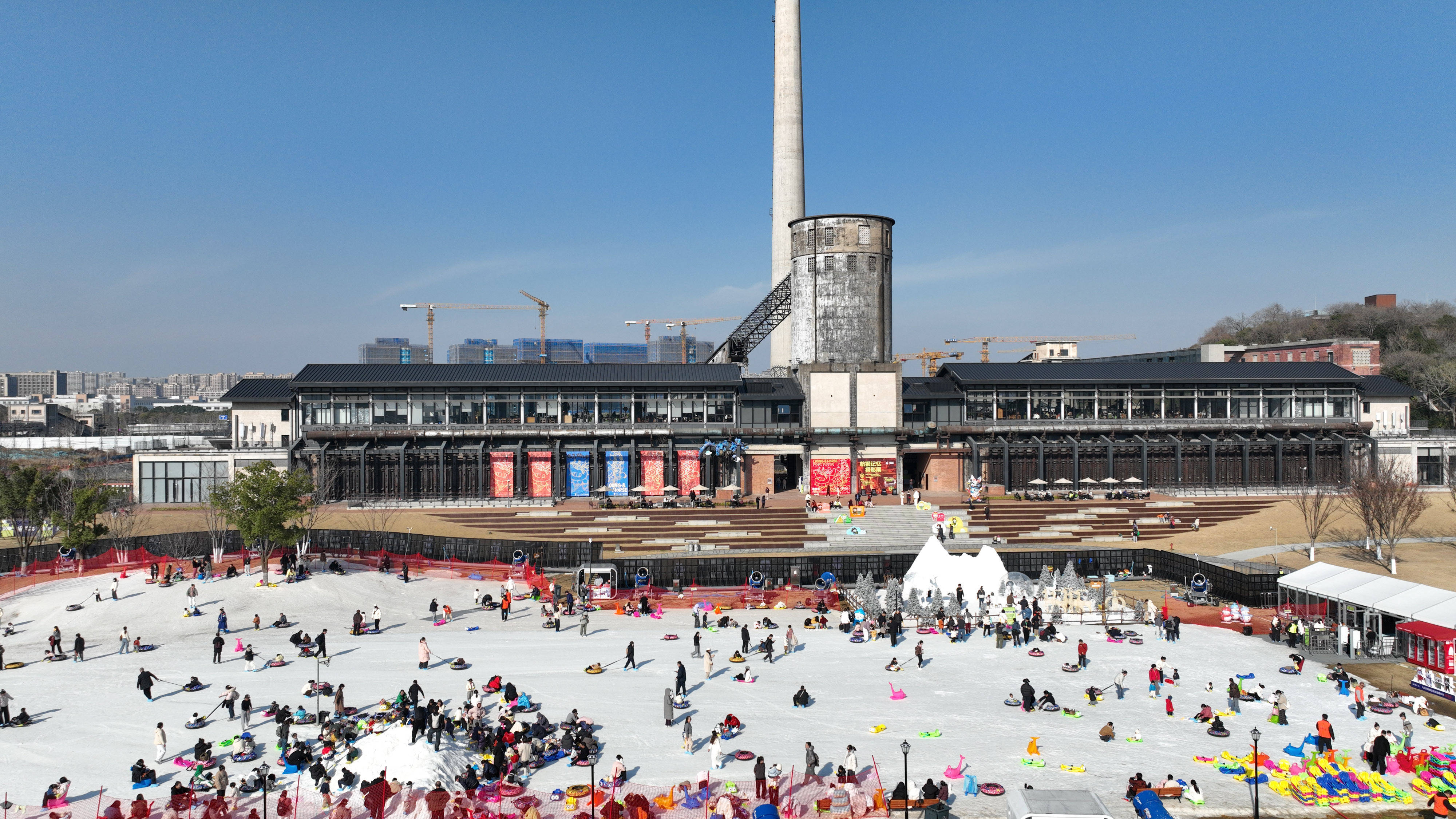 1月9日,位于浙江杭州的大运河杭钢公园开启冰雪嘉年华,近万平方米冰雪世界吸引市民前来游玩。新华社记者 翁忻旸 摄工业遗存成为独特文化地标